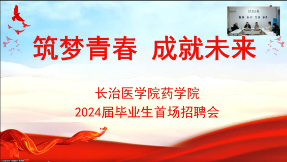 近日药学院2024届毕业生线上专场招聘会在云端成功举办。药学院党政负责人、毕业班辅导员、就业专员及2024届毕业生参加招聘会。北京阳光诺和药物研究有限公司、北京甘李生物技术有限公司、北京圣兰格医药科技开发有限公司三家用人单位进行了宣讲,提供就业岗位30余个。